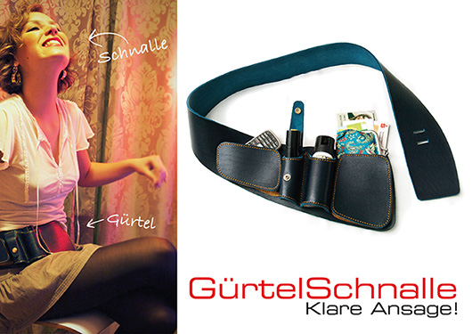 Marke 'Gürtelschnalle' Werbeplakat mit Prototypen zum Thema 'Accessoires'