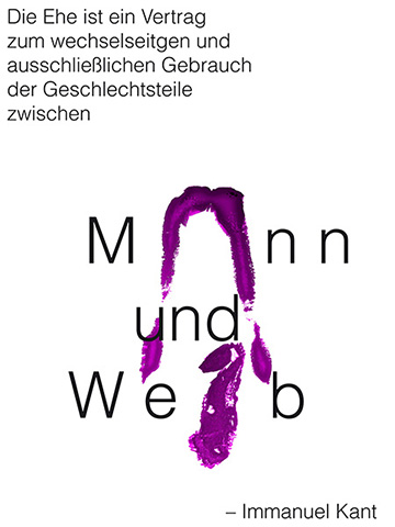 Studium, Plakat zum Thema 'Sexualität'. "Die Ehe ist ein Vertrag zum wechselseitigen und ausschließlichen Gebrauch der Geschlechtsteile zwischen Mann und Weib" von Immanuel Kant