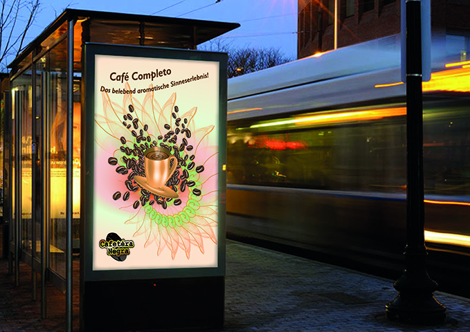 Weiterbildung Illustrator Aufbaukurs, urbane Szene mit Kaffeeplakat