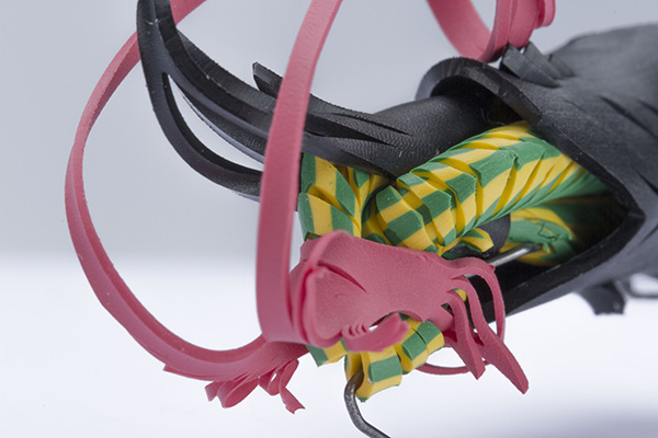 Kunstobjekt im Raum zum Thema 'Negativer Raum' als Elektroschrott-Monster