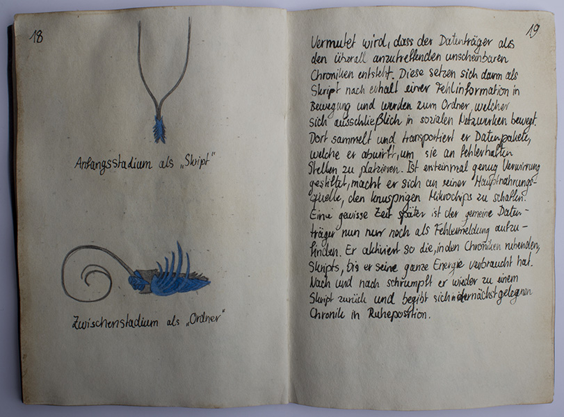 Fiktives Expeditionsheft zur Schmuckserie 'Polymerer', illustriert von Hand